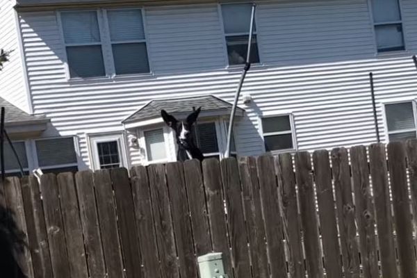 するとある家の塀の奥から、犬の声が。やがてワンコは、なんとジャンプをして塀に上に出て、吠え続けたそうです。